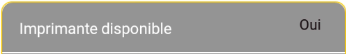 Si votre terminal de paiement n'a pas d'imprimante intégrée, les options d'impression ne seront pas disponibles. La section Imprimante sur la page des paramètres de l'application affiche si une imprimante est disponible ou non en affichant Oui ou Non pour la fonction Imprimante disponible, tel qu'illustré ci-dessous :