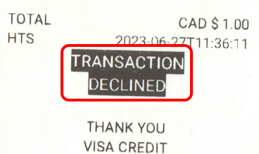 Imprimer renversé sur refus : Imprime le résultat de la transaction en blanc sur un fond noir pour les transactions refusées.