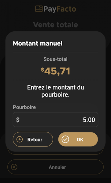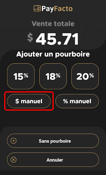 Montant de pourboire personnalisé