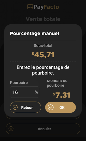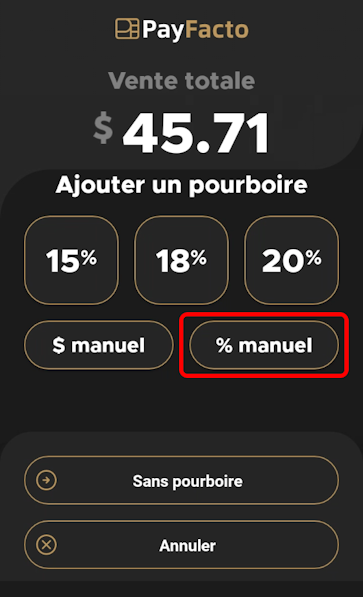 Pourcentage de pourboire personnalisé