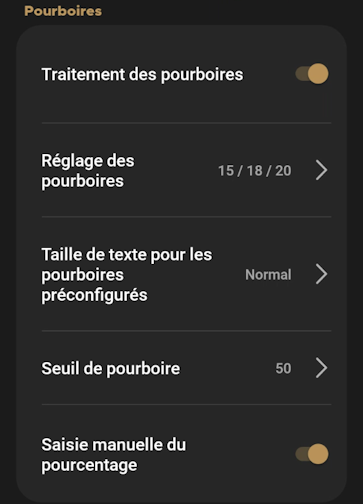 Réglage des pourboires