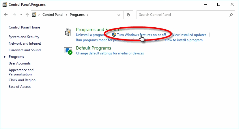 Sous Programmes et fonctionnalités, sélectionnez Activer ou désactiver des fonctionnalités Windows.