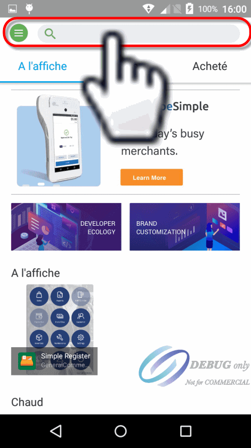 Les instructions ci-dessous ont été créées à l'aide du terminal de paiement Android PAX A920. Cependant, les instructions sont les mêmes pour tous les terminaux de paiement PAX basés sur Android et la plupart des autres terminaux de paiement basés sur Android comme le Clover Flex.