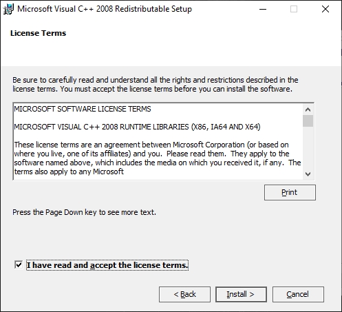 a.Pendant l'installation, vous pourriez voir l'installation de composants requis tels que les redistribuables Microsoft C++ 2008. Cela n'apparaîtra que si le composant est absent de votre système. Sinon, vous ne verrez pas cela.