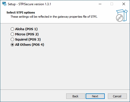 Ce composant installe le plugin RTI-SIPA, nécessaire à une utilisation avec l'application SecurePay pour les terminaux de paiement fixes. Ce composant doit être installé sur le serveur Back-Office principal du système de point de vente, de même que sur chacune des caisses où un terminal de paiement est installé. Ce plugin peut être installé conjointement au client STPISecure, pour les systèmes utilisant également des terminaux mobiles avec SecureTable.