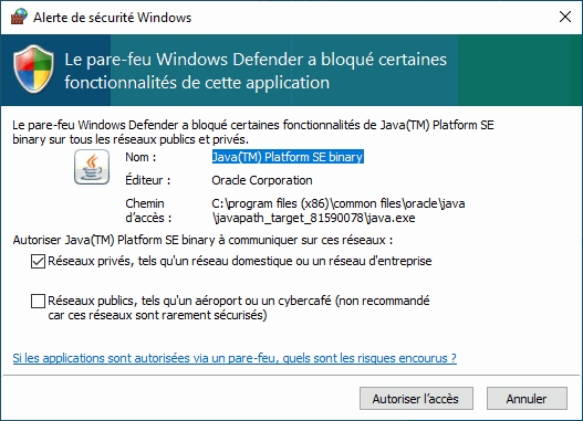 Veuillez télécharger et installer la dernière version de Java pour Windows compatible avec votre édition de Windows (32-bit ou 64-bit).