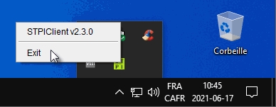 Dans la zone de notification Windows, faites un clic droit sur l'icône STPI et sélectionnez l'option Exit.