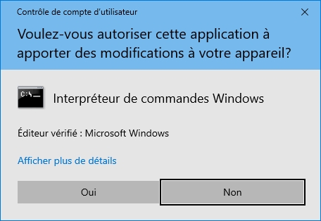 Vous verrez un avertissement du Contrôle de compte d'utilisateur. Cliquez sur Oui.