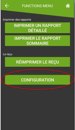 ) en haut à droite de l'écranLe menu FONCTIONS s'affichera. Toucher le bouton CONFIGURATION