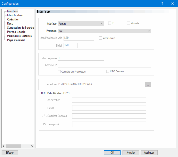 4. L'écran de configuration s'ouvre. La branche Interface est sélectionnée par défaut.