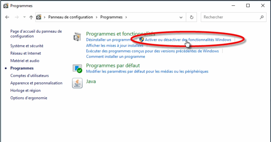Sous Programmes et fonctionnalités, sélectionnez Activer ou désactiver des fonctionnalités Window