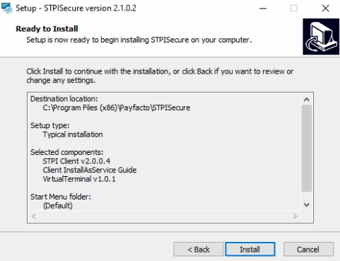 Ceci termine le processus d'installation du logiciel client STPISecure.