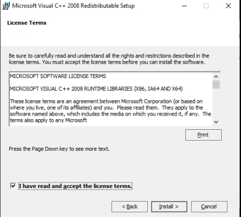 a. Pendant l'installation, vous pourriez voir l'installation de composants requis tels que les redistribuables Microsoft C++ 2008. Cela n'apparaîtra que si le composant est absent de votre système. Sinon, vous ne verrez pas cela.