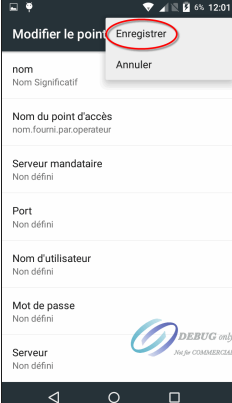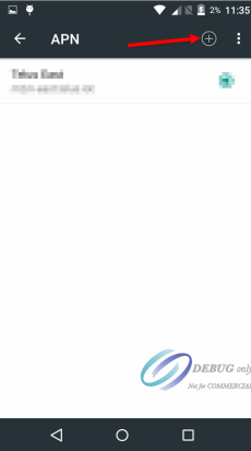 La première fois que vous accédez à ce paramètre, la liste des APN sera vide. Toucher le "+" tout en haut de la liste pour ajouter une nouvelle entrée.