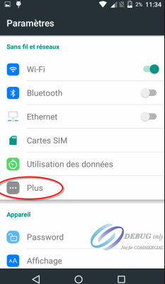 Dans la section Sans fil et réseaux, touchez l'option Plus....