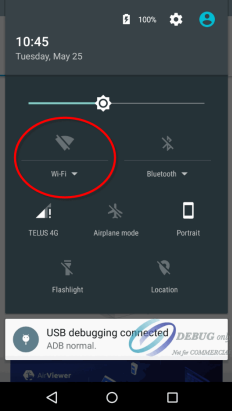 Depuis l'écran d'accueil, balayez deux fois depuis le haut de l'écran. Cela affichera quelques paramètres rapides pour le terminal. Appuyez sur l'icône Wi-Fi pour désactiver votre connexion Wi-Fi.