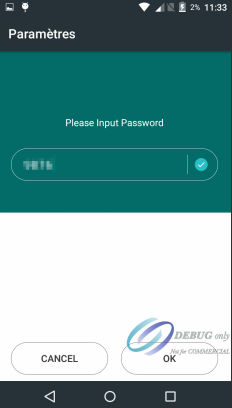 Une invite de mot de passe apparaîtra. Saisissez le mot de passe de l'appareil et touchez le bouton OK.