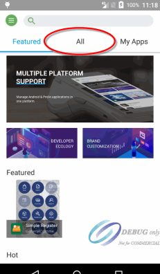 Une fois dans le PAXSTORE, touchez "Tous" près du haut de l'écran.