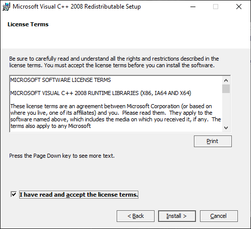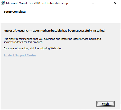 a.Pendant l'installation, vous pourriez voir l'installation de composants requis tels que les redistribuables Microsoft C++ 2008. Cela n'apparaîtra que si le composant est absent de votre système. Sinon, vous ne verrez pas cela.