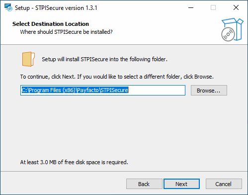 4. Sélectionnez le dossier d'installation pour les fichiers STPI. Acceptez le chemin par défaut en cliquant Suivant>.
