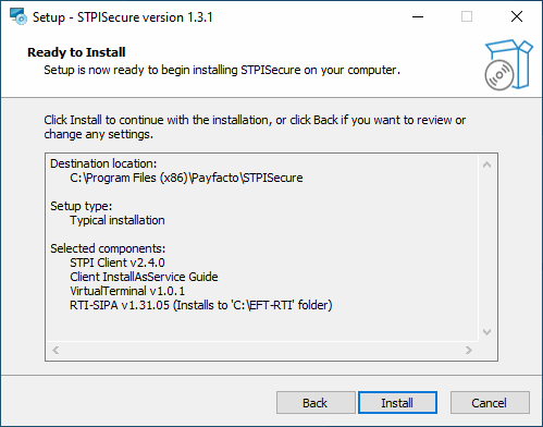 Ce composant installe le plugin RTI-SIPA, nécessaire à une utilisation avec l'application SecurePay pour les terminaux de paiement fixes. Ce composant doit être installé sur le serveur Back-Office principal du système de point de vente, de même que sur chacune des caisses où un terminal de paiement est installé. Ce plugin peut être installé conjointement au client STPISecure, pour les systèmes utilisant également des terminaux mobiles avec SecureTable.&#x20;