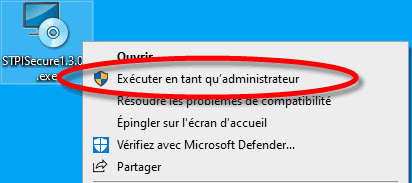1. Localisez le fichier STPISecureX.X.X.X.exe, puis cliquez avec le bouton droit sur le fichier, et sélectionnez l'option Exécuter en tant qu'administrateur.