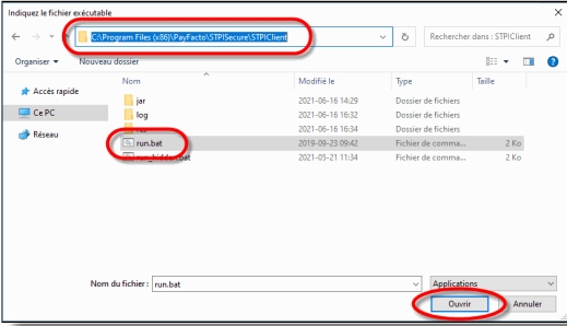 Sélectionnez le fichier Run.bat et cliquez sur Ouvrir.