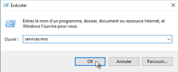 Pour vérifier que le service est démarré correctement, cliquez avec le bouton droit de la souris sur le bouton Démarrer de Windows et sélectionnez l'option Exécuter…. Vous pouvez également appuyer sur la touche Windows + R sur votre clavier. Dans le champ Ouvrir, tapez services.msc et cliquez sur OK.