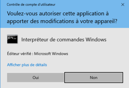 Une fenêtre d'invite de commande apparaît, avec l'en-tête Running Admin Shell. Ne la fermez pas.