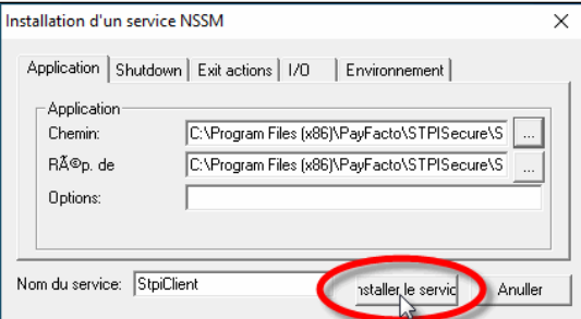 Cette étape est requise pour que le client STPISecure démarre automatiquement au démarrage de Windows et qu'il s'exécute en arrière-plan comme service, plutôt qu'en tant qu'application d'arrière-plan.