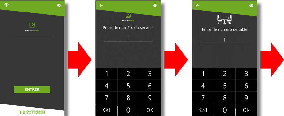 3. Connectez-vous à SecureTable avec votre numéro d'employé. Il n'est pas nécessaire d'entrer un numéro de table ou d'addition, alors appuyez simplement sur OK sans rien entrer si ces écrans sont affichés.