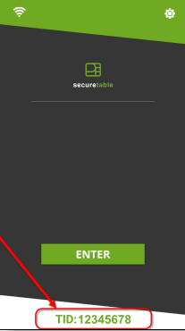 2. Localisez le terminal de paiement avec l'identifiant de terminal (TID) approprié. Sur l'application SecureTable, l'identifiant du terminal (TID) s'affiche en vert en bas de l'écran d'accueil et se compose de 8 chiffres