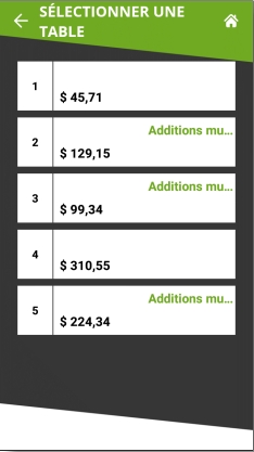 Pour sélectionner une addition à payer, il suffit de toucher la case correspondante à l'écran.