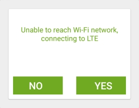 Après quelques secondes, un message d'erreur apparaît :Impossible d'atteindre le réseau Wi-Fi, connexion à LTE. Touchez OUI pour vous connecter au LTE.