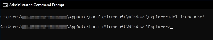 Now, delete all the files that start with "iconcache" in their file name. This can be done by typing the following command at the command prompt: