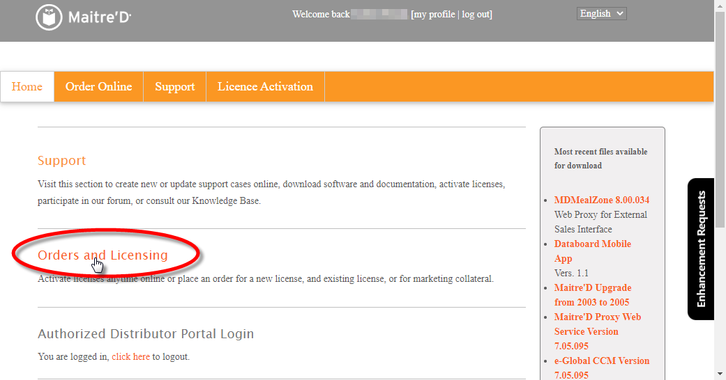 Logon to the Maitre'D Distributor Portal: