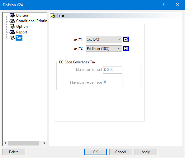 The aim of this article is to explain how to setup Maitre'D divisions to comply with the British Columbia Provincial Sales Tax Act. These setings will ensure that sodas are taxed according to Provincial Sales Tax (PST) Notice 2021-002, which came into effect on April 1st 2021. At the same time, this configuration will ensure compliance with all other provisions of the Provincial Sales Tax Act pertaining to the restaurant and bar industry, as defined in Bulletin PST 119 - Restaurant and Liquor Sellers.