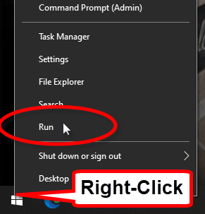 Windows logon At the Windows desktop, right-click the start button and select the Run option.