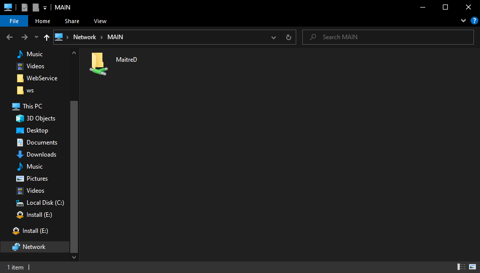 a. If the Maitre'D Back-Office is already installed, you will see the MaitreD shared folder on the PC named MAIN-BACK-OFFICE.