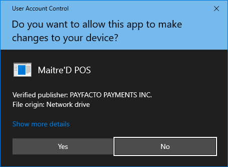 MaitreD\PRG\Setup folder You will see a UAC warning. Click Yes to proceed.