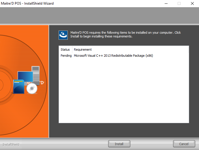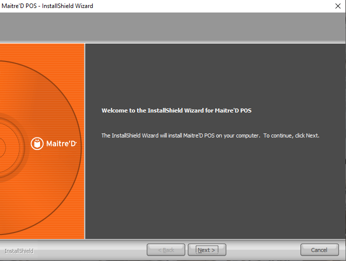 InstallShield Wizard - Redistributables Once the redistributables are installed, the Maitre'D POS InstallShield Wizard will start proper.
