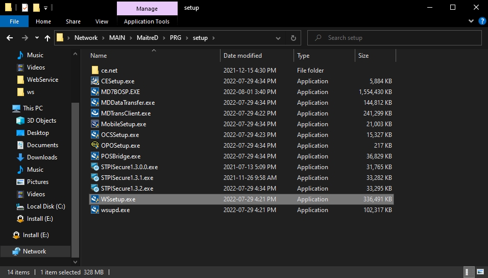 Browse to the MaitreD\PRG\Setup folder, and double-click the WSsetup.exe installer to start the POS installation.