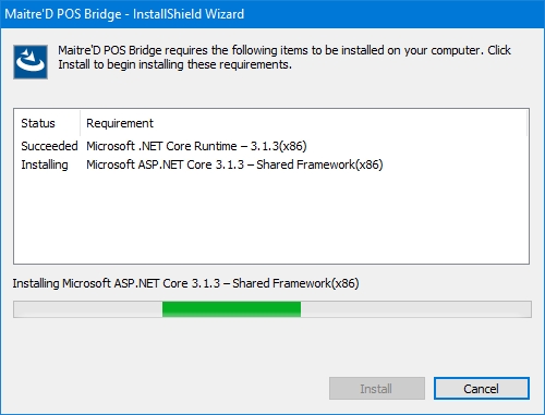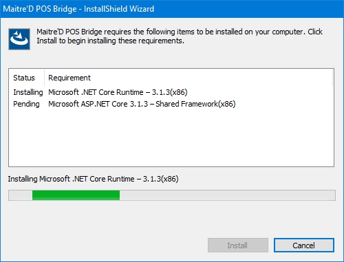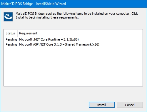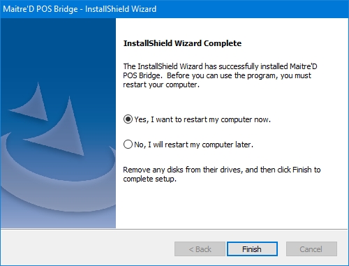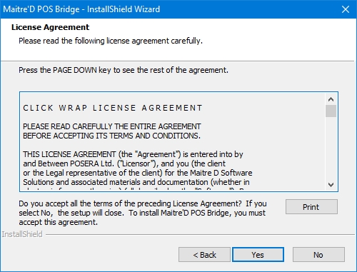 Before any Mobile POS can be used, the POS Bridge must be installed on the Maitre'D Back-Office PC: