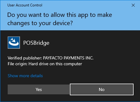The manual update process for POS Bridge is started the same way as the initial installation process: