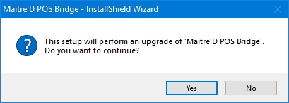 The InstallShield Wizard will start. The older version of POS Bridge will be detected, and you will be asked to update it. Click Yes to proceed.