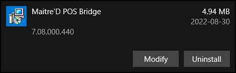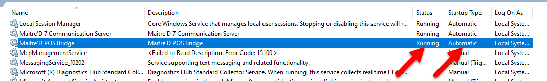Verify that the Maitre'D POS Bridge service is running