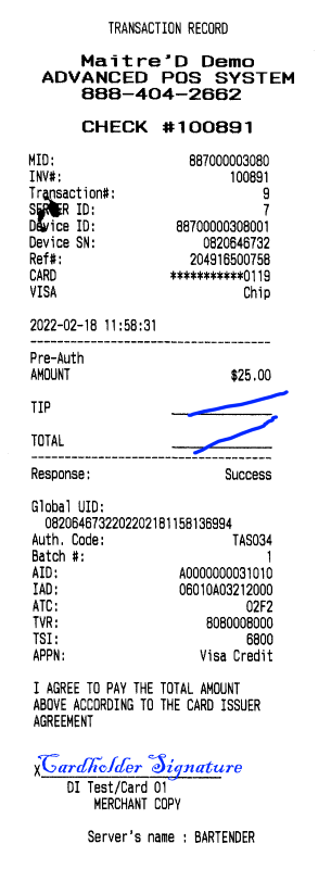 Process the Pre-Authorization at the payment terminal: