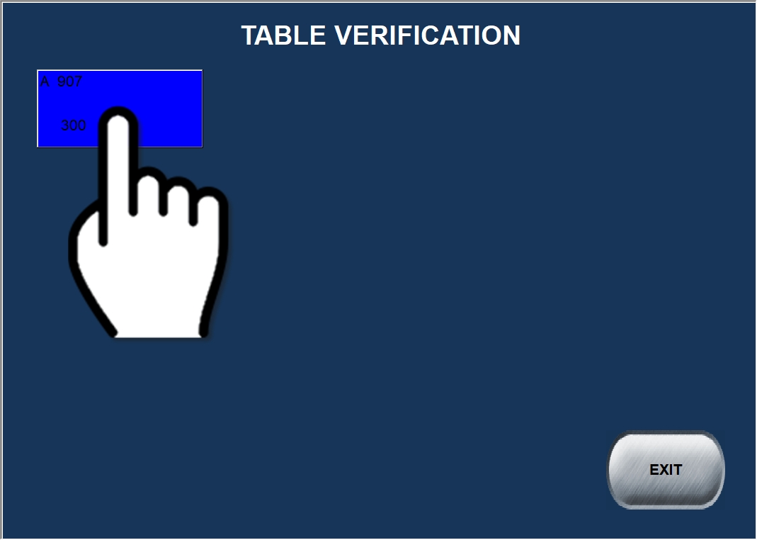 At the TABLE VERIFICATION screen, press the blue box that corresponds to the bar tab for which you need to void the pre-authorization..