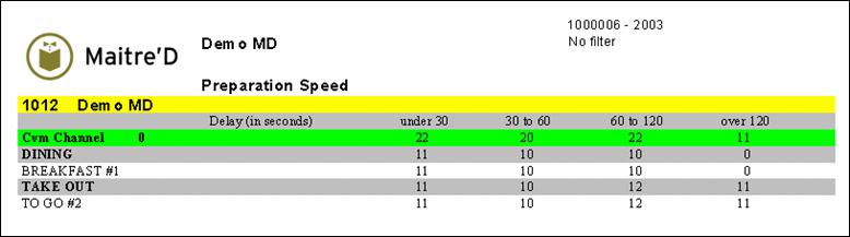 The following is a sample of the preparation speed report: