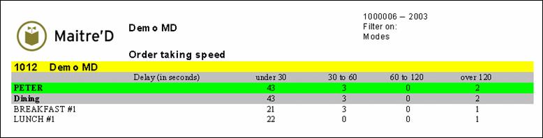For each employee in each Revenue Center and each mode, this report provides you with: